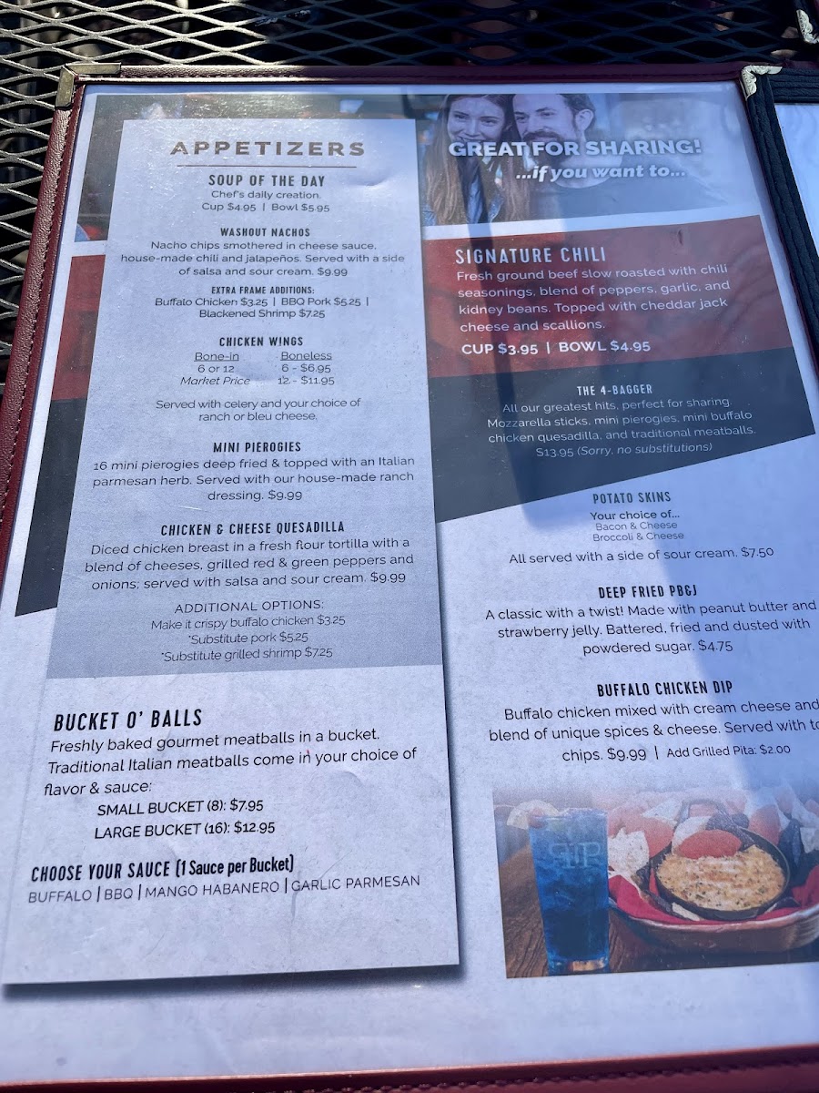 All our Greatest Hits, perfect for sharing. Mozzarella Sticks (4pc), Mini Pierogies (4pc), Onion Rings and Pickle Chips. Sorry No Substitutions